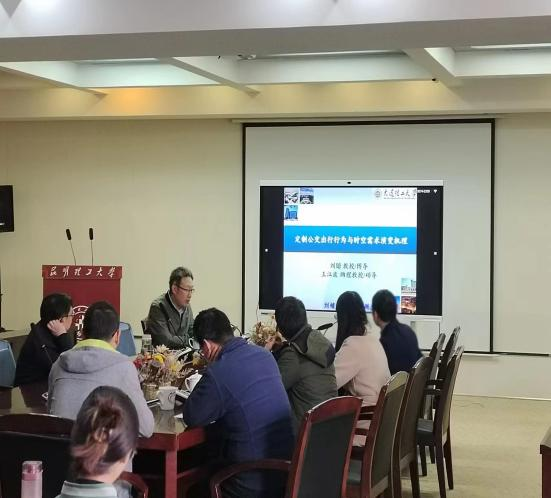 讲座开始,刘锴教授就定制公交相关的一系列问题进行了分享,其中包括定制公交系统功能及可达性、用户忠诚度及持续选择行为、定制公交需求时空演变机理等,为老师和同学们在行为选择以及研究切入点方面提供了新的思路和新的视野。之后副院长何明卫副教授感谢了刘锴教授的分享,并且鼓励大家进行交流。最后针对大家提出的问题,刘锴教授就数据获取、数据选择、数据分析等方面进行了具体的讲解。