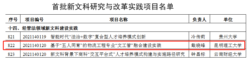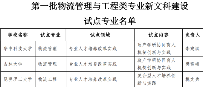 物流工程专业继今年4月份被教育部高等学校物流管理与工程类专业教学指导委员会列为“专业人才培养改革实践领域”的新文科建设试点专业后,再次被教育部列为“经管法领域新文科建设实践”专业。