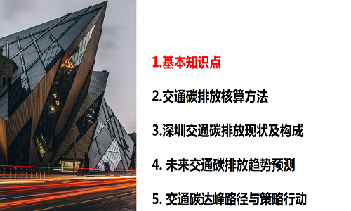 碳达峰和碳中和已经纳入国家发展战略,交通出行产生的碳排放接近碳排放总额的1/4,因此,如何在交通领域实现碳达峰具有重要意义。本次讲座邀请了深城交资深工程师郑健作为主讲人,对碳排放的基本知识点、核算方法、深圳碳排放现状及趋势、交通碳达峰路径与策略等进行了系统介绍。