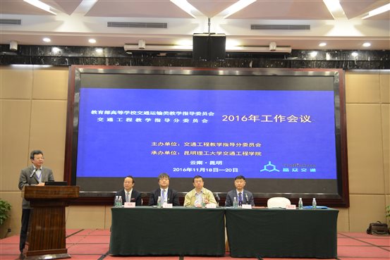 11月18日至20日,教育部高等学校交通工程教学指导分委员会2016年工作会议在昆明理工大学召开。交通工程教学指导分委员会副主任委员、北京交通大学邵春福教授,副主任委员、同济大学杨晓光教授,交通工程教学指导分委员会秘书长、北京工业大学关宏志教授,浙江大学王殿海教授等12位委员以及37所高校的交通工程专业负责人,人民交通出版社和交通行业企业代表参加了此次会议。会议分开幕式、主题报告、主题讨论以及闭幕总结四个阶段进行。牛治亮副校长代表昆明理工大学出席了开幕式。