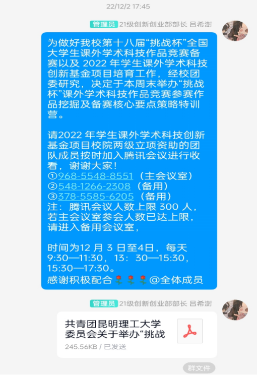 线上举行“挑战杯”全国大学生课外学术科技作品竞赛备赛宣讲。