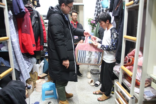 党委副书记张强,学工办主任王懿娜,团委负责人晁洁,2018级辅导员寸议鹏携团委学生会部分干事到2018级贫困生宿舍一一走访送去冬日里的温暖。