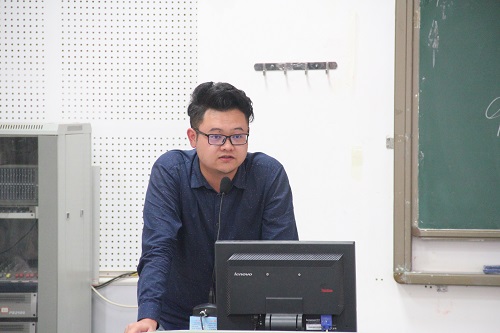 第四部分是2018级辅导员寸议鹏对新生们进行入学指导。首先,寸议鹏老师列举了如今大学新生常见问题并分析了其发生的原因,其中寸议鹏老师着重强调了大学学习的重要性,教导新生们应注重学习以及让新生们了解到考试挂科的严重后果。其次,寸议鹏老师又对宿舍同学相处问题发表讲话,他以亲身经历来呼吁、劝告同学们与室友友好相处,要互帮互助,要学会互相尊重对方。诙谐幽默的演讲风格让现场的氛围轻松愉快。随后,寸议鹏老师又向18级新生介绍了交通学院的奖学金,助学金的相关规定及获取条件。最后寸议鹏老师对学生安全问题做出强调,其中重点强调了校园贷对学生安全所产生的问题,并用身边同学的经历劝告所有18级新生学会保护自己,远离校园贷。