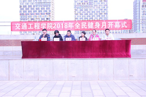 2018 -2019学年全民健身月开幕仪式在怡园田径场正式举行。此次活动由交通院体育部组织,参与人员有交通院党委副书记张强老师,2018级新生辅导员寸议鹏老师,学工办主任王懿娜老师,团委负责人晁洁老师,兼职辅导员赵雪亭,大一全体同学,大二、大三代表人员。