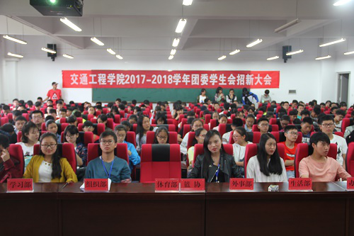 团委副书记张将彦、学生会主席杨富贤、副主席何小陆、副主席宁秋润以及团委学生会各个部门的负责人、交通院2017级全体新生。
